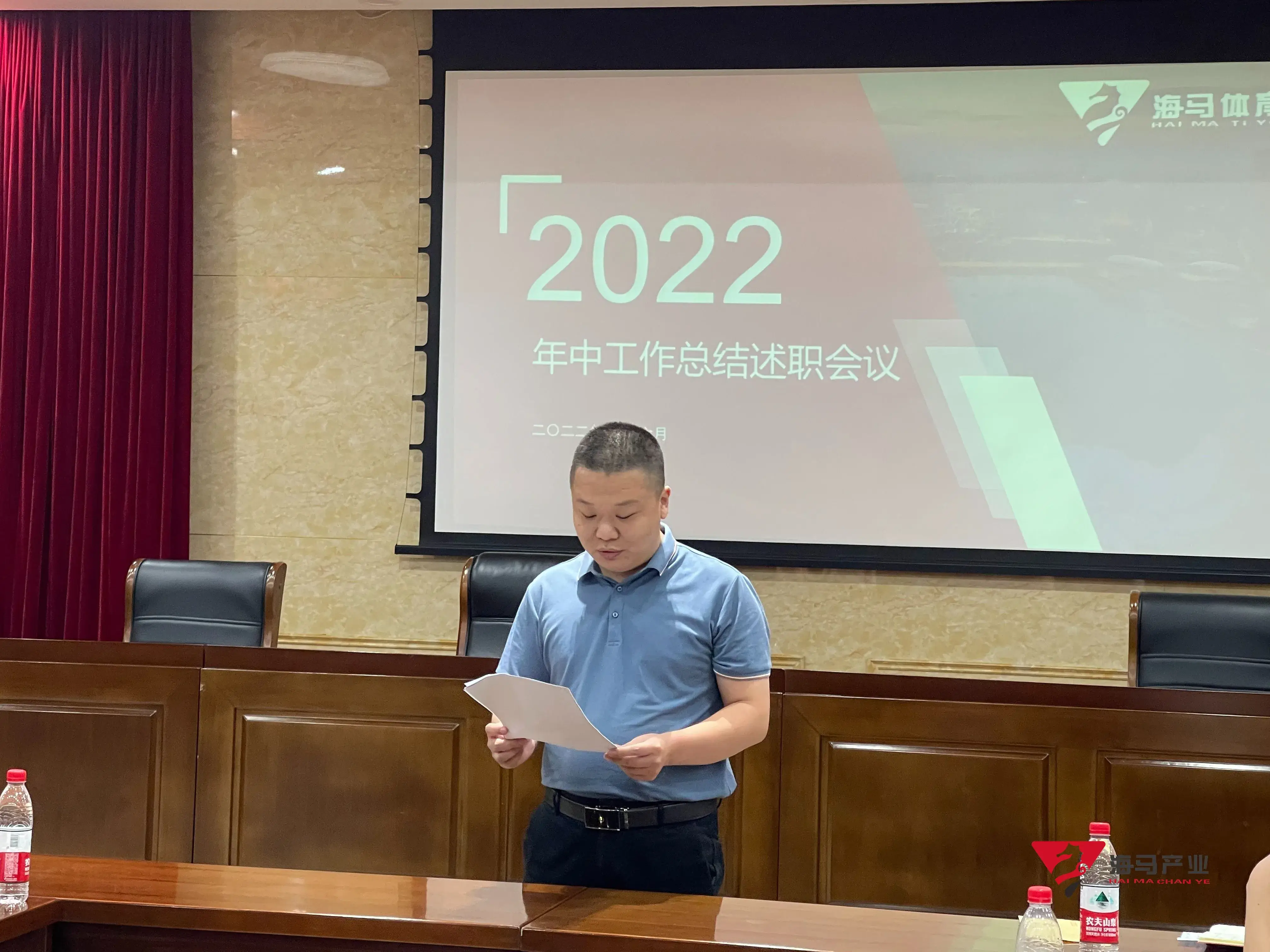 2022年6月29日下午,6688体育文化产业集团在山东省体育中心二楼会议室召开年中工作总结述职会议,会议对上半年工作成果进行了总结汇报,并就下半年重点工作进行部署。总经理王海民出席了本次会议。会议由综合管理部负责人王永健主持。